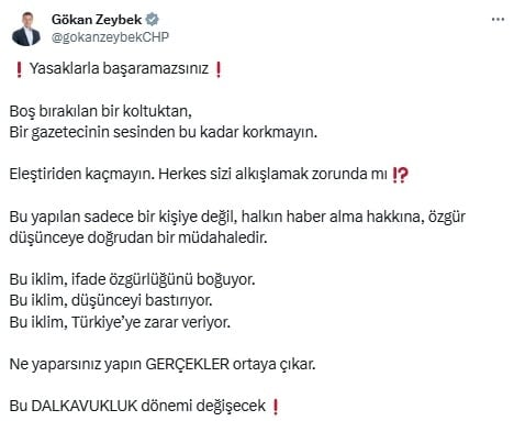 Bu yapılan sadece bir kişiye değil, halkın haber alma hakkına, özgür düşünceye doğrudan bir müdahaledir.