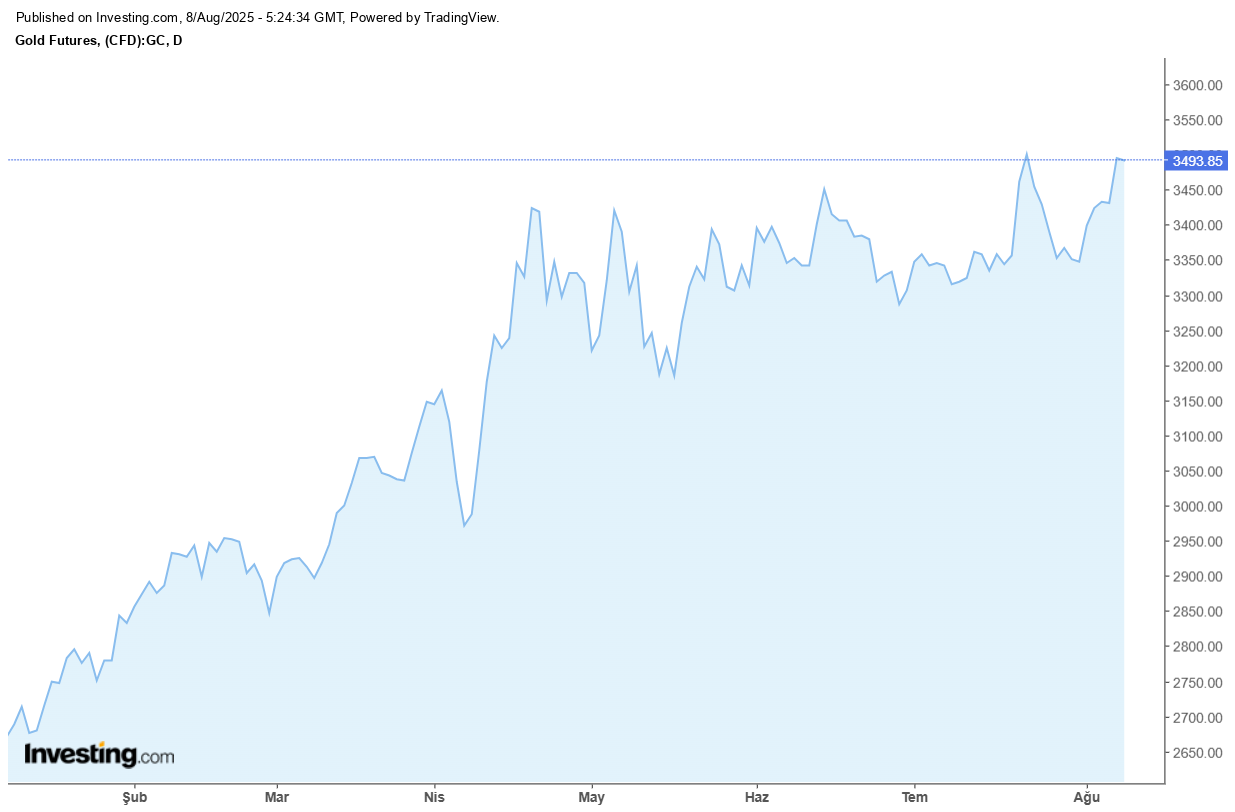 Altının ons fiyatı şu an 3.396 dolar seviyesinde işlem görüyor ve 23 Temmuz’dan beri en yüksek değerine ulaştı. Haftalık bazda ise yaklaşık yüzde 1 oranında artış kaydedildi. ABD’de vadeli altın kontratları ise yüzde 0,9 artışla 3.484,10 dolara tırmandı. Seans içerisinde 3.534,10 dolar ile tüm zamanların zirvesi görüldü.