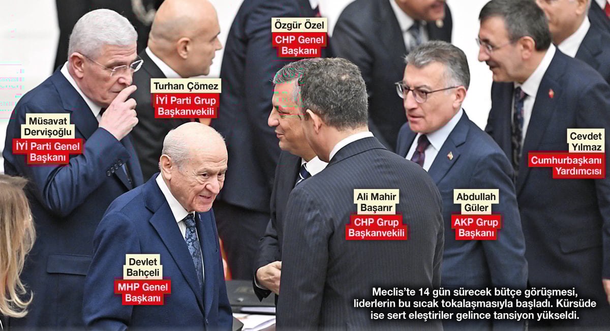 İYİ Parti lideri Müsavat Dervişoğlu, İmralı görüşmesinin ve açılım komisyonunun tutanaklarının ‘yarısının gizli’ tutulmasını eleştirdi. Rahatsız olan Kurtulmuş, sadece üç komisyon toplantısının tutanaklarının gizli tutulduğunu belirtti. Hükümetin bütçe teklifinde, 19 trilyon liralık devasa bir harcama yetkisi istediğini dile getiren Dervişoğlu’nun konuşması özetle şöyle: “Kurduğunuz bu rejimin adı ‘yeni’ değil, eşitsiz Türkiye’dir. Bütçenizin ismi de bize göre tükeniş bütçesidir.”