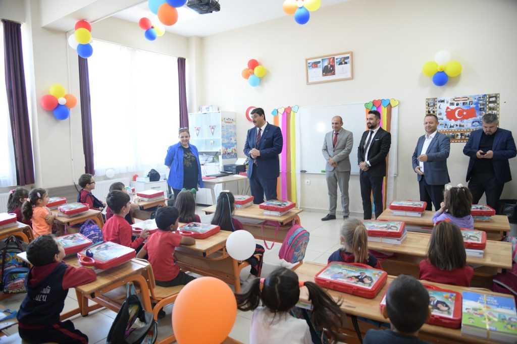 Eğitimci kimliğiyle dikkat çeken Başkan Oğuz, her sene olduğu gibi bu sene de okula yeni başlayan birinci sınıf öğrencileri için okul malzemelerinden oluşan çanta hediye etti. İçerisinde defter, kalem, silgi, boyalı kalem çeşitleri ile iş teknik malzemelerinden oluşan kırtasiye seti çantası, çocuklara hediye edildi.