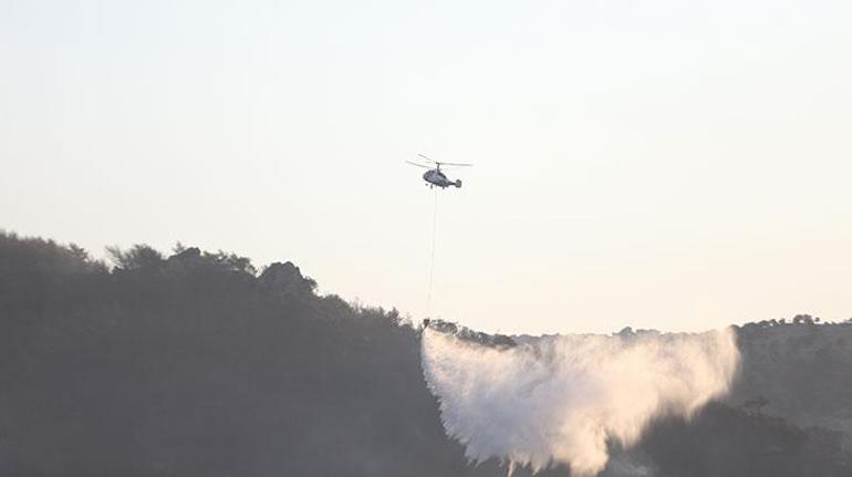 Günün ilk ışıklarıyla birlikte 2 helikopter yangını söndürme çalışmalarına havadan destek vermeye başladı. Alevlerin etkisini yitirdiği gözlenen sahada, kuvvetli rüzgarın etkisi ise devam ediyor.
